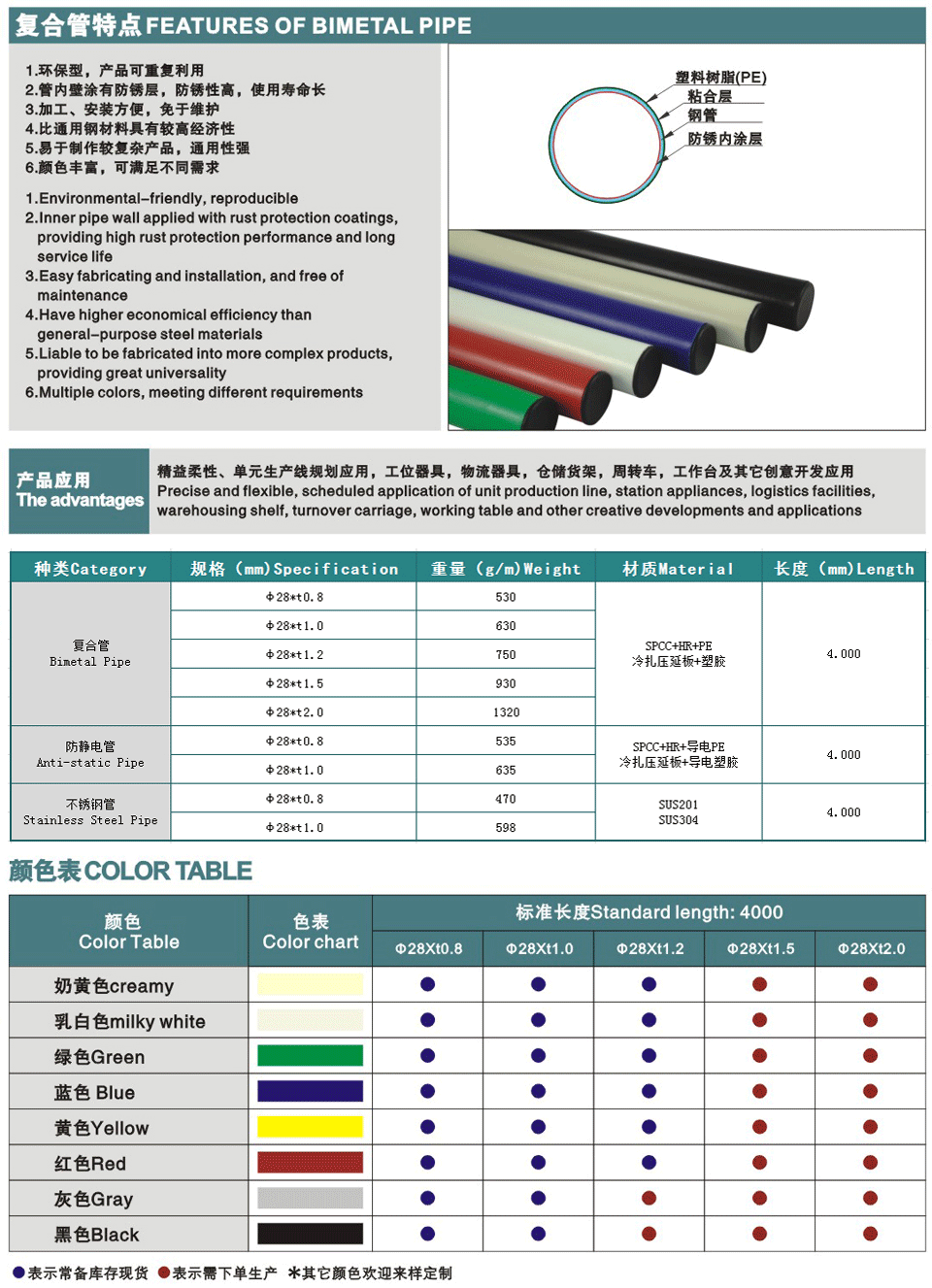 精益管,我們也經常稱之為線棒、物流管、復合管等。是一種鍍鋅的鋼管并帶有塑料樹脂涂層。標準的精益管直徑一般是28mm,鋼管的壁厚一般在0.8mm-1.5mm之間,顏色主要為米黃色,白色,黑色,綠色等。塑膠的材質主要以PE為主。