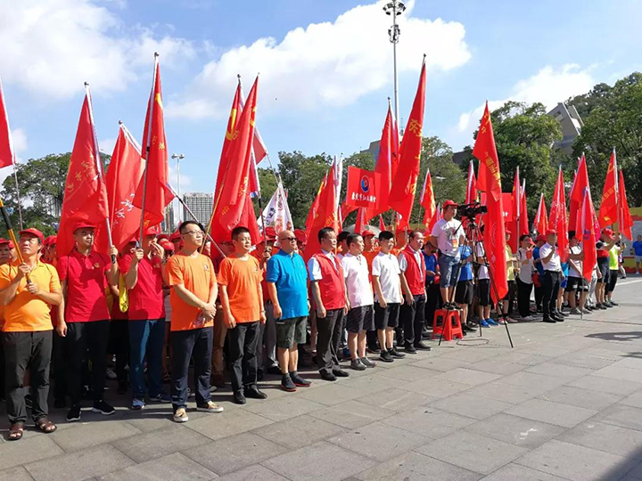 2018年6月30日上午,以“黨旗高揚風帆勁 平安東莞譜華章”為主題的慶祝建黨97周年活動在黃旗公園舉行,本次活動由市工商聯(總商會)指導,東莞市潮汕商會、東莞市江西商會、東莞市江蘇商會發起聯合在莞25家商協會共同主辦。東莞市工商聯(總商會)副主席張軍民、副調研員宋志鋒等領導及近1000名商協會黨員出席活動。
