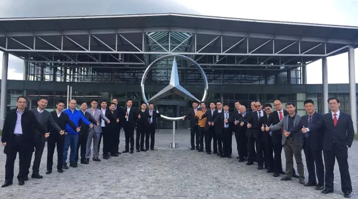 鐘董在梅賽德斯奔馳汽車工廠合影