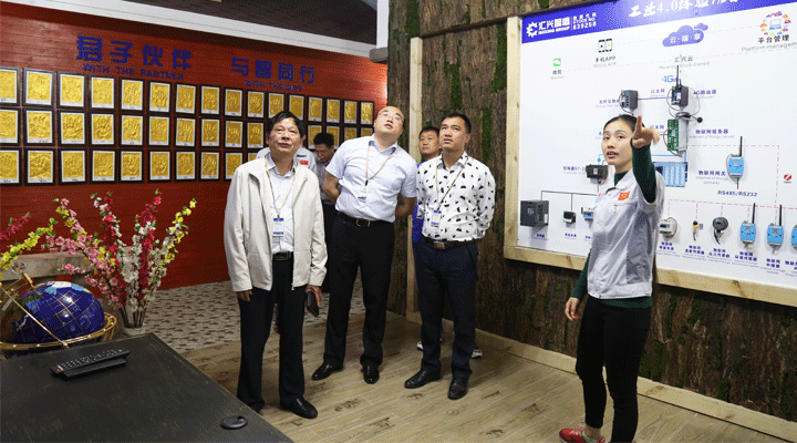 2017年 4月25日,江西國興實業集團有限公司董事長李虞財一行蒞臨廣東匯興精工智造股份有限公司(股票代碼:839258)參觀考察。匯興智造順德分公司總經理鐘元華、董事長特助柯火炎代表全體員工對李董一行的到來表示熱烈歡迎,并全程陪同參觀了匯興智造企業文化及工業4.0智能裝備體驗館,并就空調智能生產線、LED老化測試線等項目進行了深入探討。