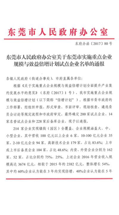 根據《關于實施重點企業規模與效益倍增計劃 全面提升產業集約發展水平的意見》(東府〔2017〕1號),以及《關于......